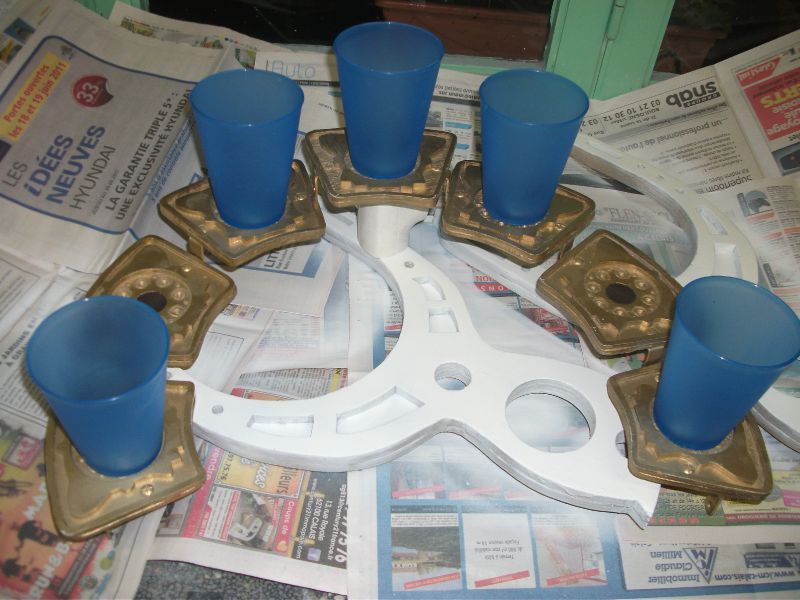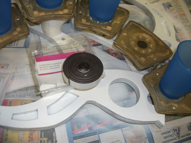 Mise en place d'aimants sur le plateau et verres. Car impossible de rouler avec les verres. Nous procederons a un test dans un futur proche.